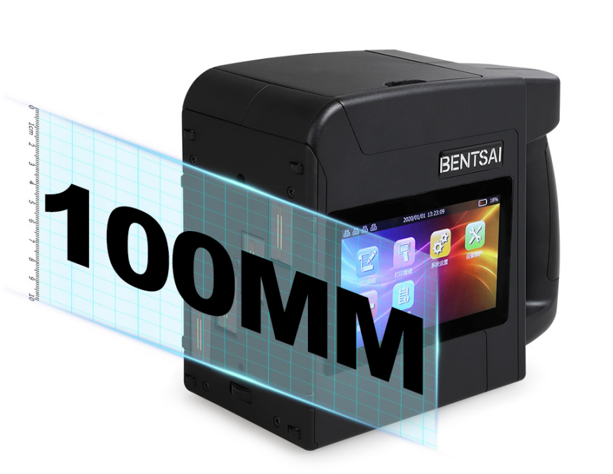 100mm超寬噴頭高度,操作簡單,使用便捷,適用于大型紙箱,木箱,紙袋,水泥制品等材質,一鍵噴印,立馬成型。